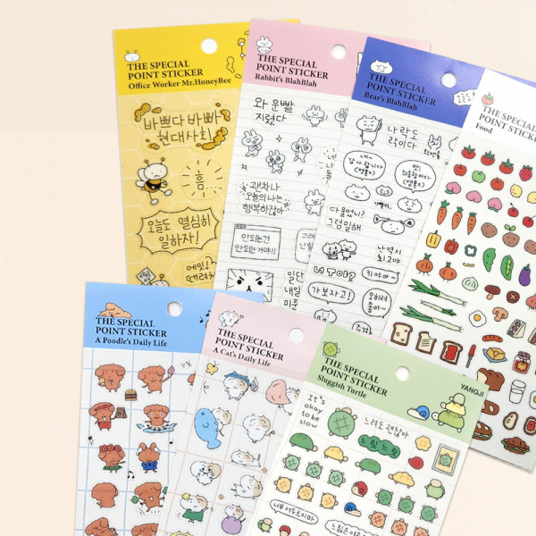 더스페셜-포인트스티커-유광투명스티커 7종(고양이,푸들,거북이,토끼,곰돌이,꿀벌,푸드)