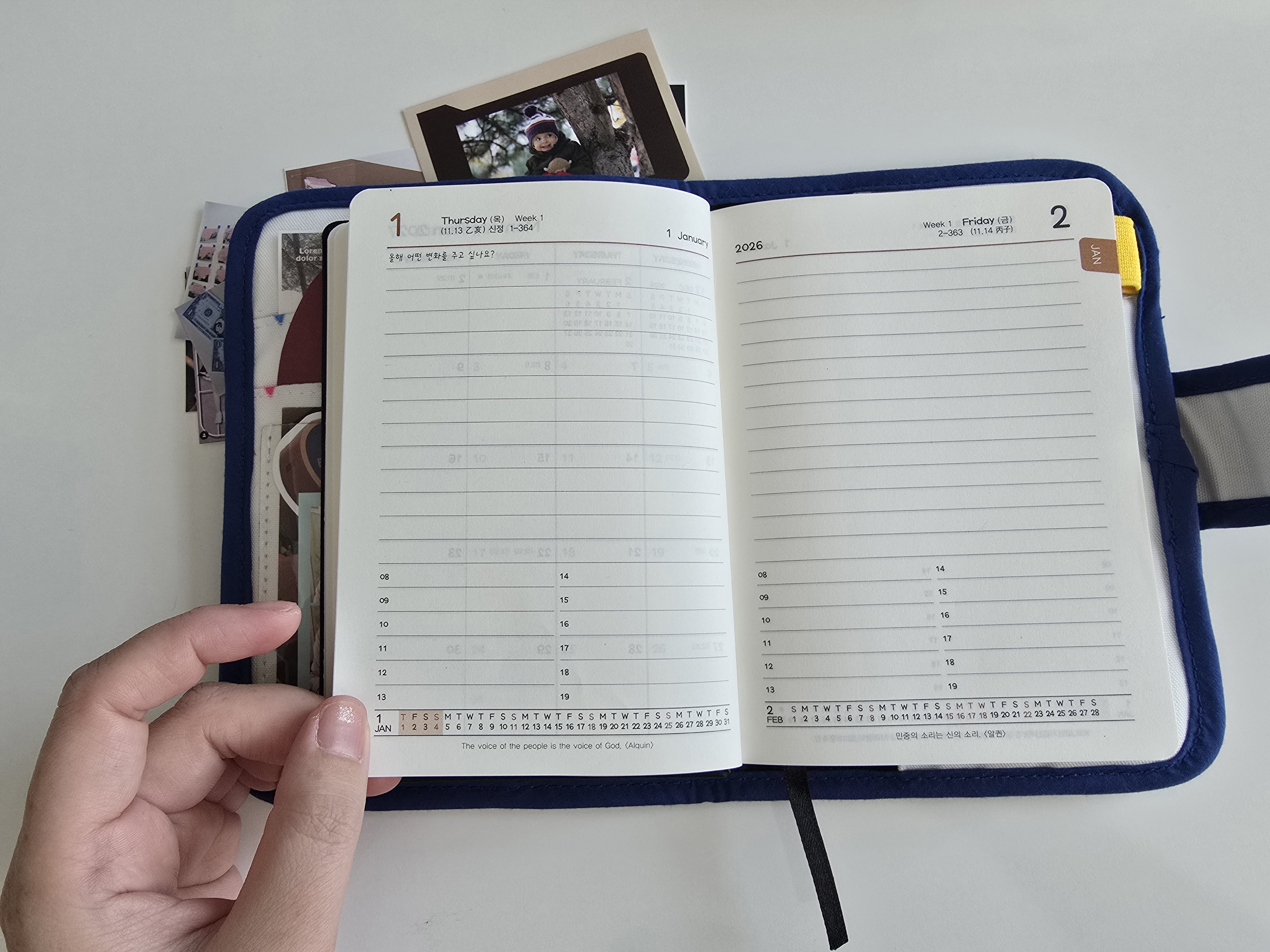 다꾸하는 사람들은 다이어리 셋업이 정말 중요한데 사이즈도 작아서 귀엽고 육아일기용 으로 구입한건데 벌써 내년이 기다려져요 내년엔 양지사 제품 두가지로 다이어리 꾸밀 생각에 벌써 두근두근 합니다 디자인 심플하고 가격대비 저렴해보이지 않아 타제품보다도 만족감 너무 좋아요 매년 이 다이어리를 살 예정입니다 양지사 짱!!