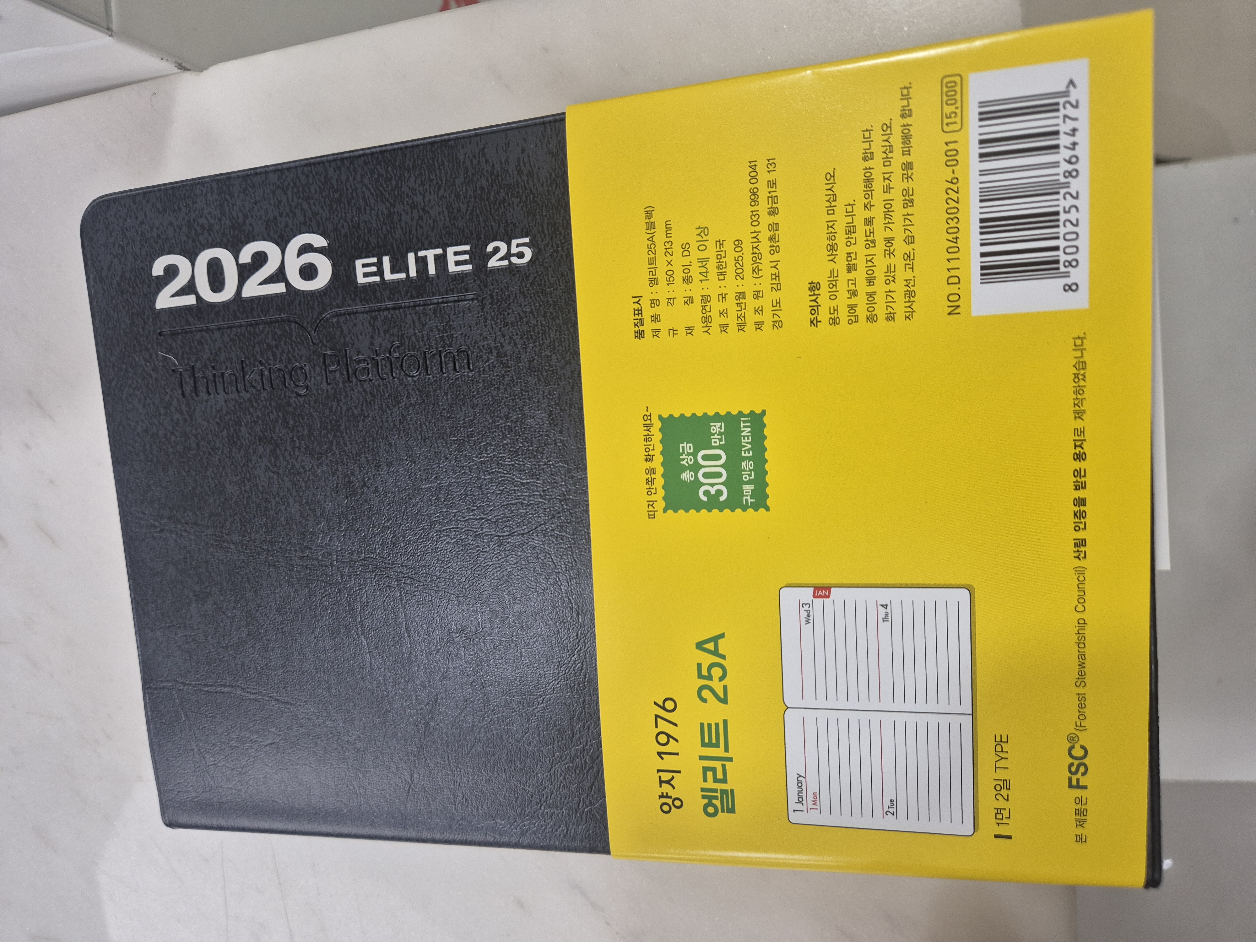 네이버 양지몰에서 2026 엘리트 25A 8개를 같은 부서 사람들과 쓸려고 샀어요~ [2면 4일] 형식에 날짜까지 있어서 다들 마음에 들어하고 너무 좋아요~