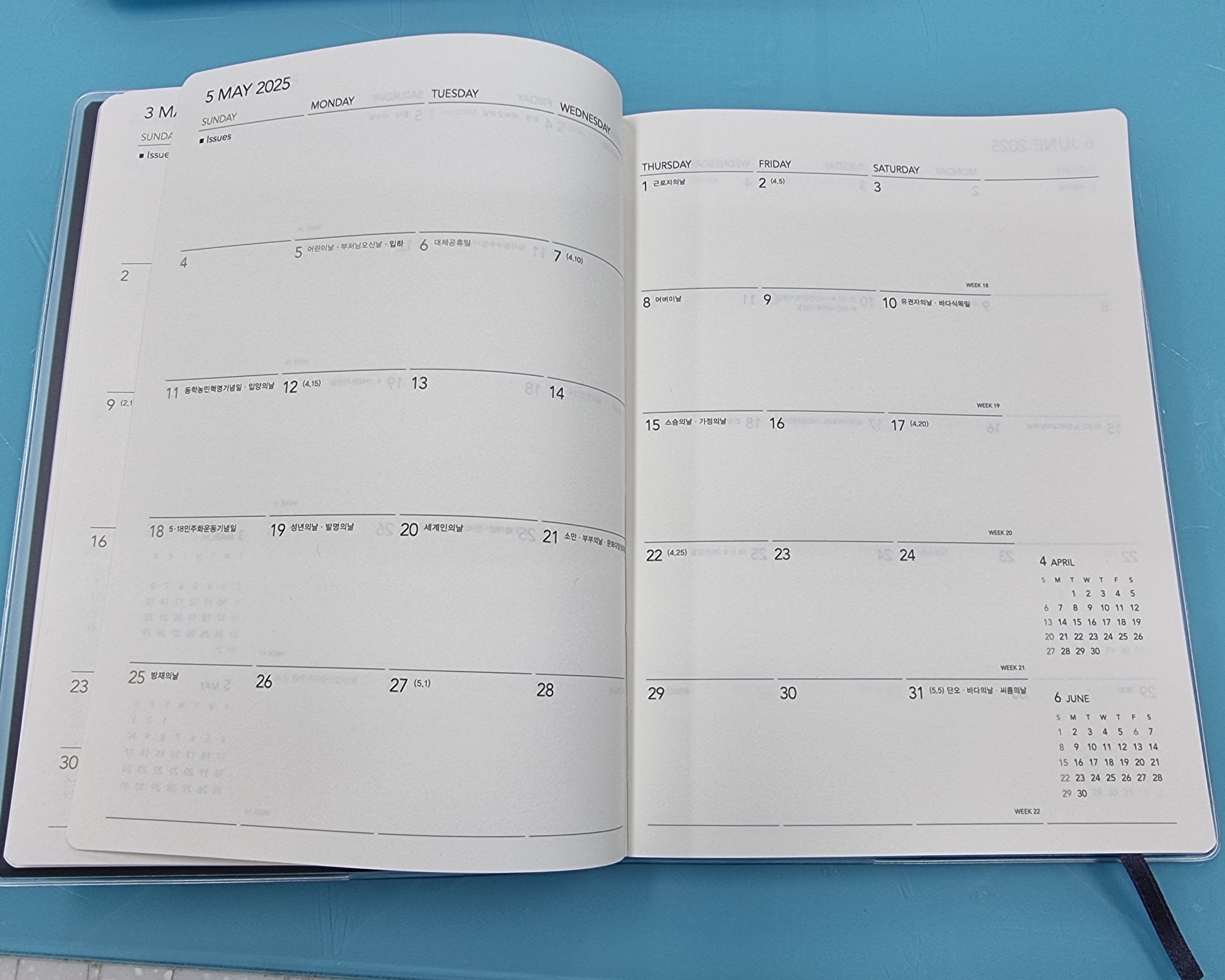 양지사 유즈어리 다이어리와 위클리 플랜 등을 사용했었는데 매니지먼트는 처음 구매해봅니다. 이 제품은 제가 사용했던 제품들의 장점만 모아놓은것 같습니다. 달력이 앞부분에 모여있어서 연간 계획을 관리하기 편리하고, 2면 1주로 정리할 수 있는 주간 일정은 한번에 보기좋게 정리할 수 있어서 좋습니다. 사이즈도 A5정도 사이즈라 너무 크지도 작지도 않고, 두께도 두껍지 않아서 들고다니기에 부담이 없네요. 일간 일정칸도 넉넉해서 정리하기 너무 좋습니다. 위클리 플랜을 써와서 그런지 저는 주간 일정 부분은 세로 포멧이 더 편하네요. 제가 딱 원했던 스타일의 다이어리를 발견해서 기분 좋네요. 앞으로 이 다이어리로 정착할 것 같습니다.