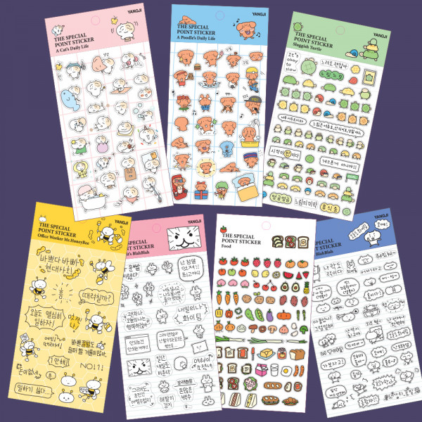 더스페셜-포인트스티커-유광투명스티커 7종(고양이,푸들,거북이,토끼,곰돌이,꿀벌,푸드)