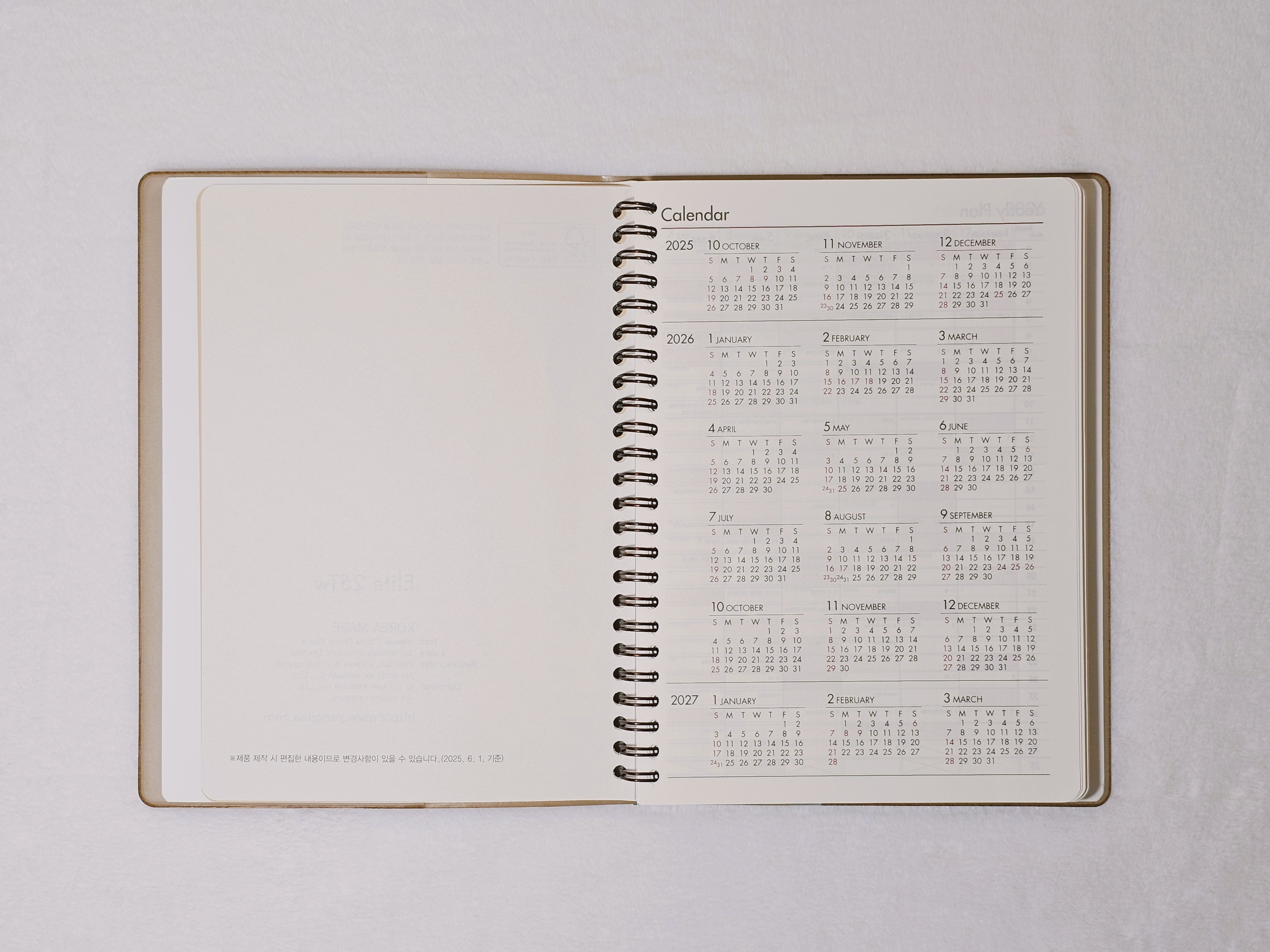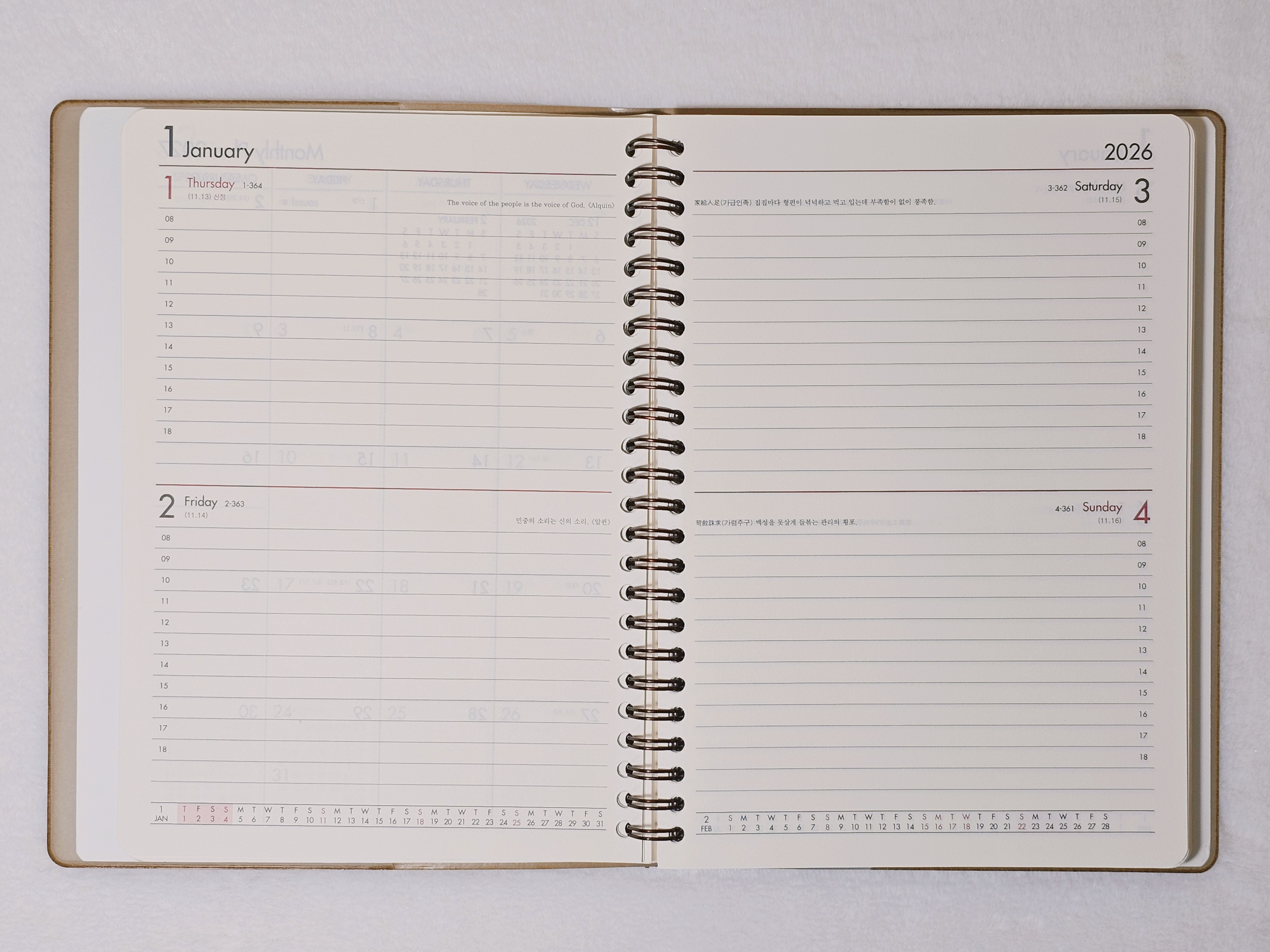 양지사 제품 특유의 부드러운 종이 질감과 스프링 조합이라 서점에서 직접 보고 바로 구매했습니다. 작년엔 무인양품과 일본 유명 브랜드 다이어리를 썼는데, 품질과 가격, 둘 다 만족스럽지는 못하더군요. ㅠ.ㅠ