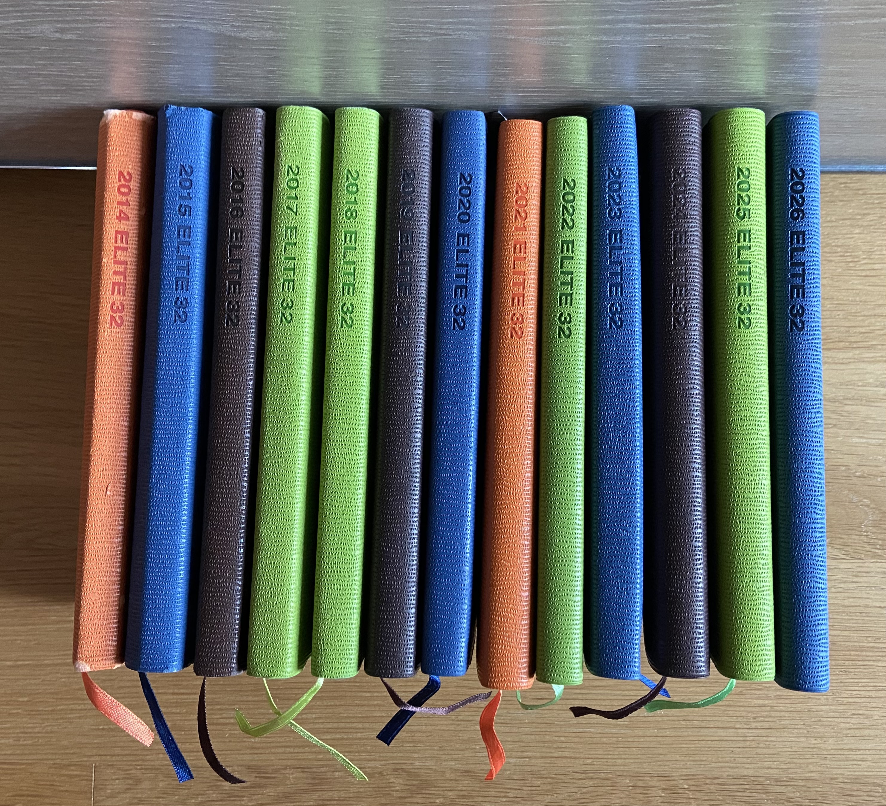 엘리트32는 사이즈나 디자인이 제 맘에 쏙 들어 10년 넘도록 구입해 사용중입니다. 매일 무슨 일이 있었는지, 어떤 생각을 했는지 기록하고, 가끔은 돌아보는데도 필요한 동반자이자 삶의 기록이 되었습니다. 계~~~속 나오길 바라며…너무 오래 사용하다보니 커버 색이 좀 추가되면 좋겠다는 생각이 듭니다. 부탁드려요~ 😊