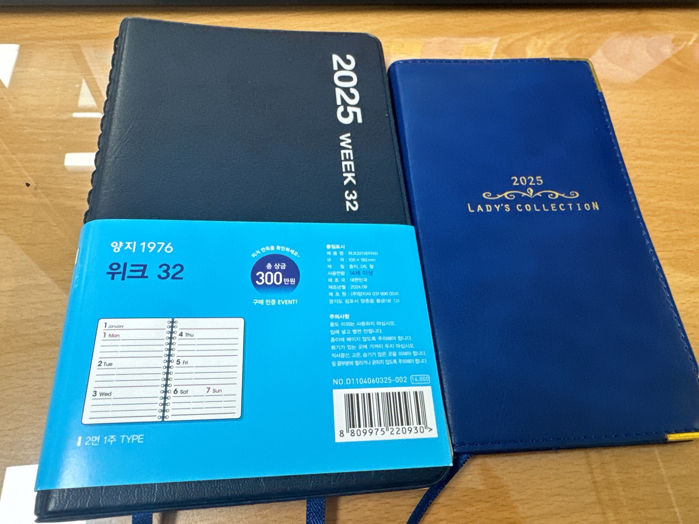 짝수년도 분홍색 홀수 년도 남색으로 사용하려 합니다. 내구성이 너무 좋아서, 정착합니다. 1.월+주+월+주로 사용할 수 있는 다이어리를 선호 2. 가벼워서 휴대성이 좋아야 할 것 3. 기념일, 음력이 기재되어 있어 계획이 용이함. 디자인은 변화가 없어서 제가 커스텀해서 사용하고 있습니다! 절대 단종안되요! 꼭 번창하시길