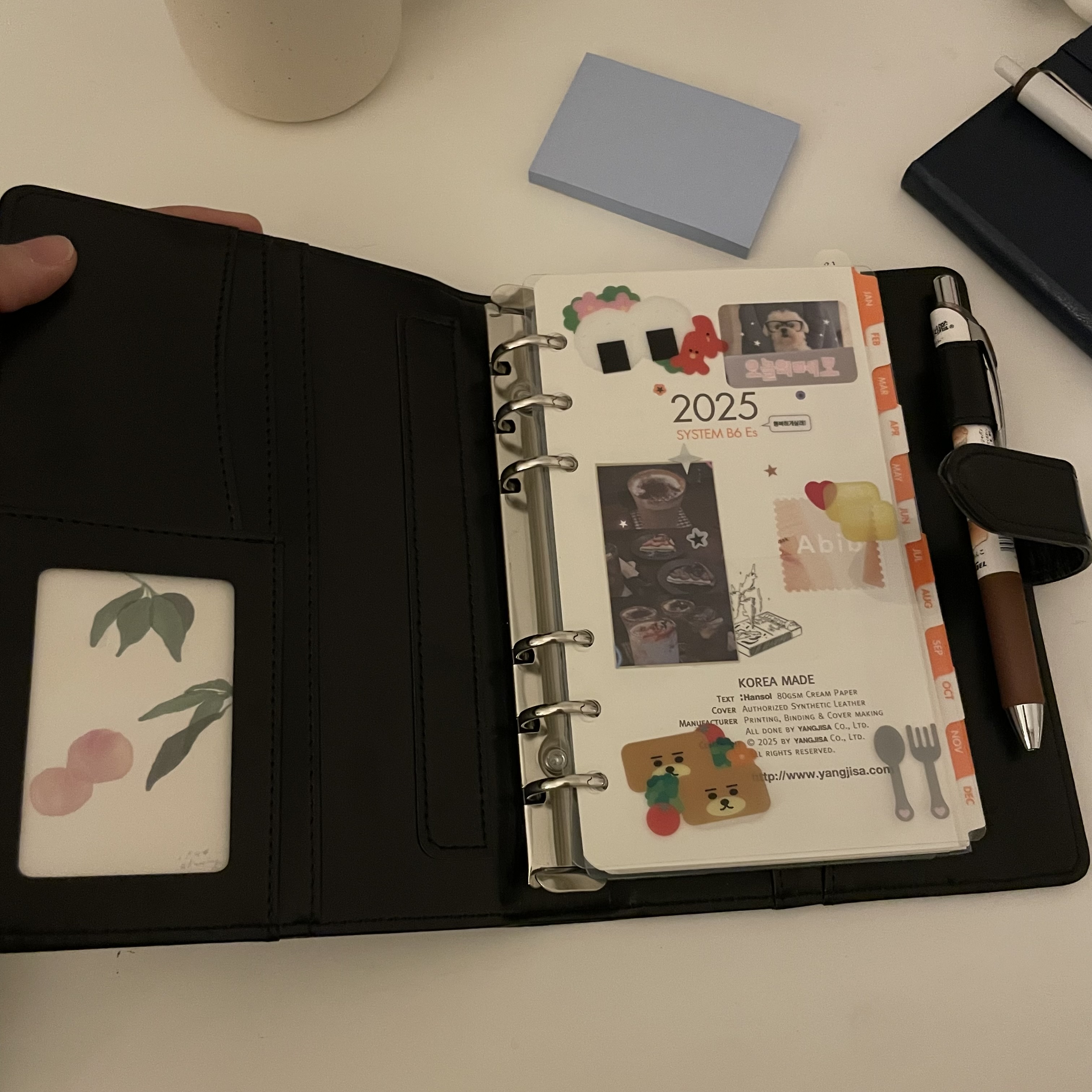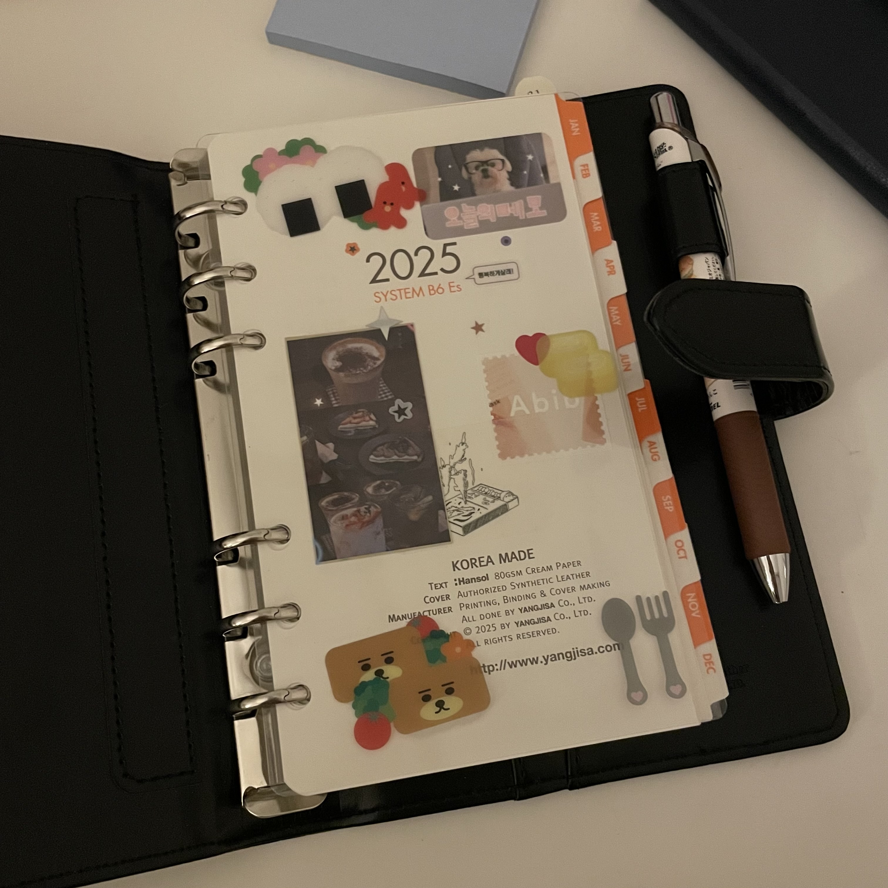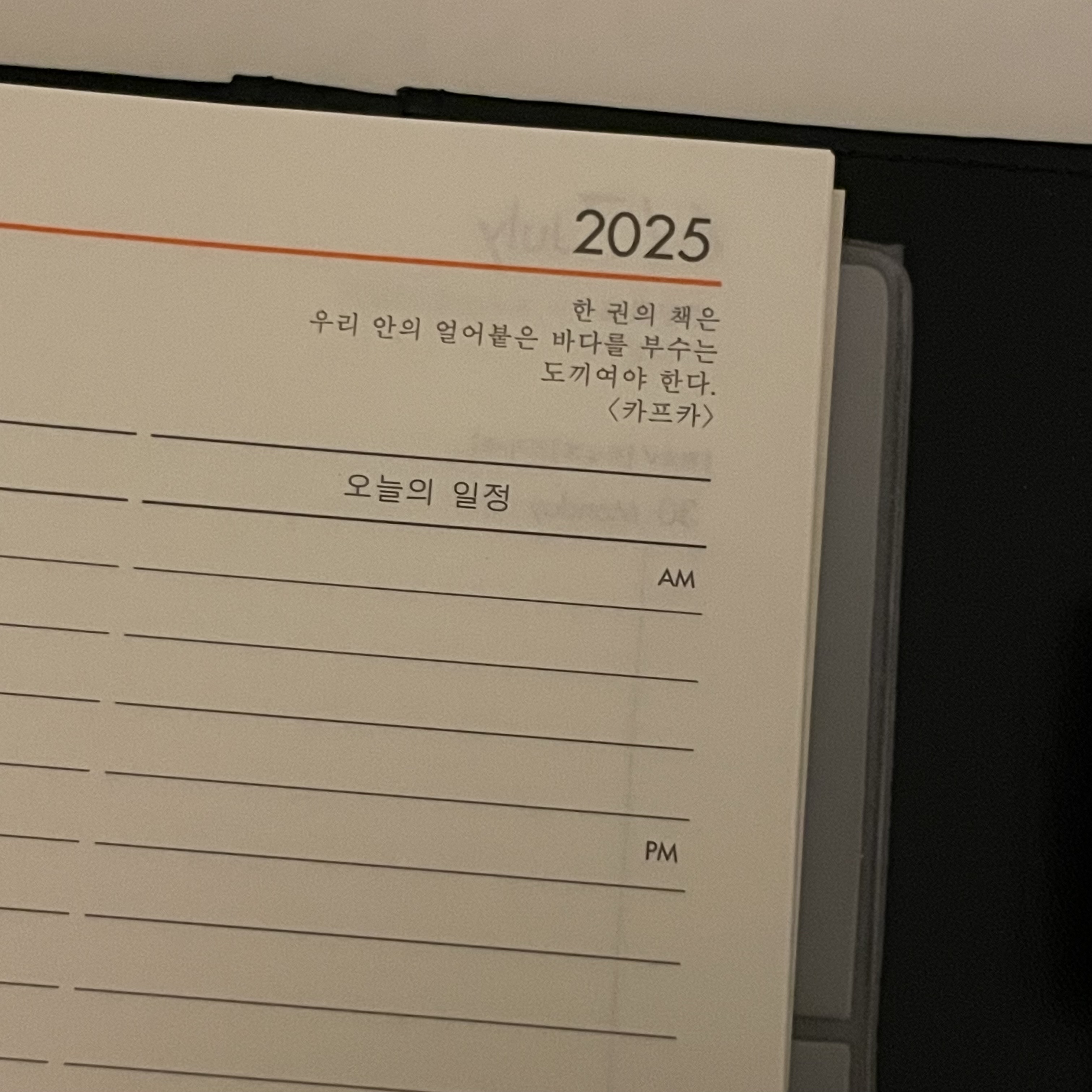 작은 다이어리를 쓰다가 조금 큰걸로 바꿨는데 몬가 튼튼하고 검은색이 넘 깔끔하고 예뻐요 ♡ 원래 받아서 내지를 바꾸려했는데 기존 내지도 마음에 들어서 그냥 쓰려구요ㅎㅎ 페이지마다 작은 글이 적혀있는 것도 귀엽습니다 🤗