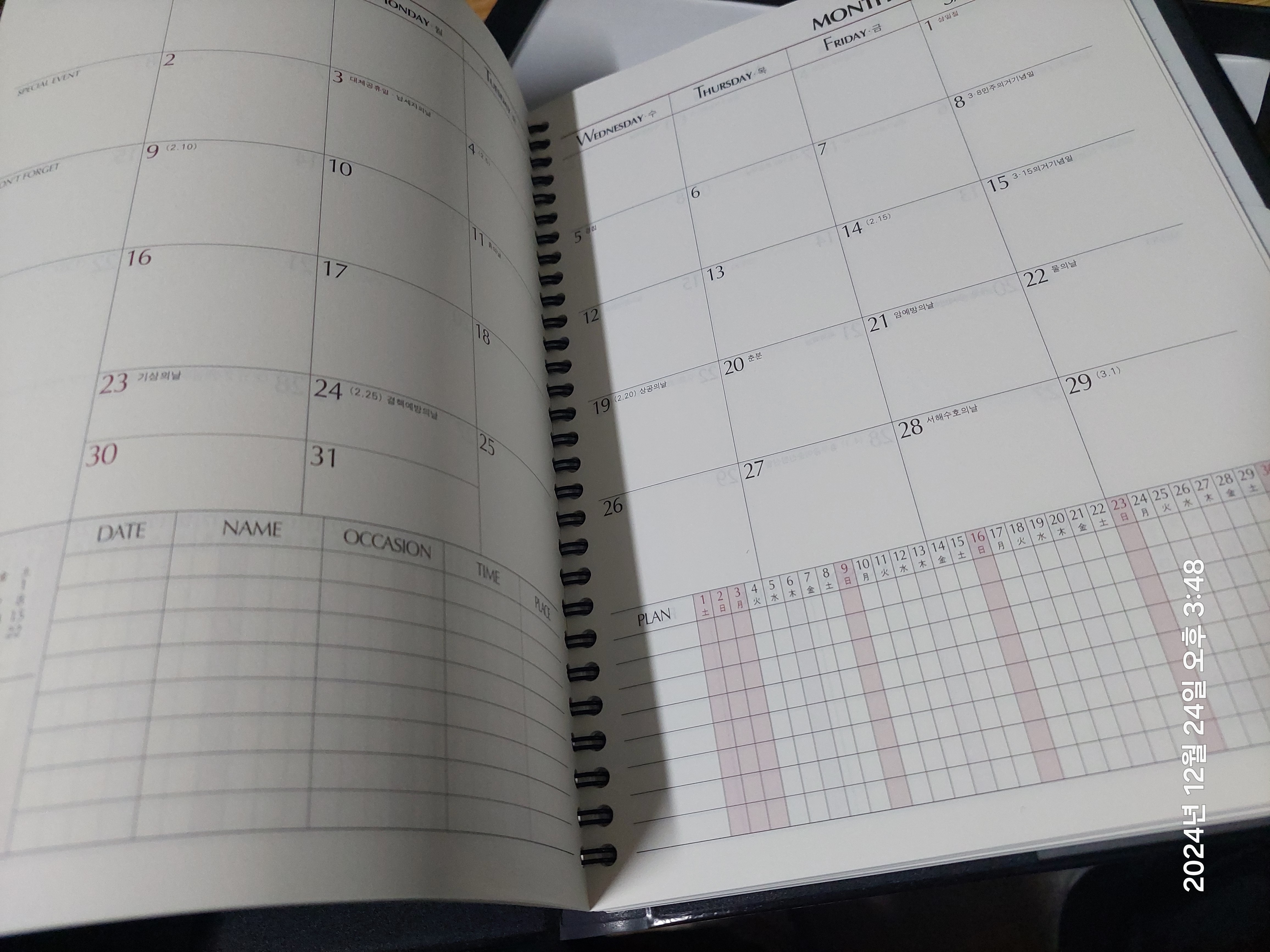 20여년간 매니지먼트 다이어리 16tw만 사용해 왔습니다. 관리자용 업무일정 관리에 제일 적합한 다이어리이죠. 모든 이에게 추천합니다. 2면 1주를 횡으로 관리하면 한눈에 확인이 됩니다. 스프링식으로 바뀐 건 정말 아쉽고 스프링이 아니건 양장식으로 비싸게 바꾼건 양지의 실수인 것 같습니다. 스프링식이 아닌 형태로 만들어지길 기대합니다.